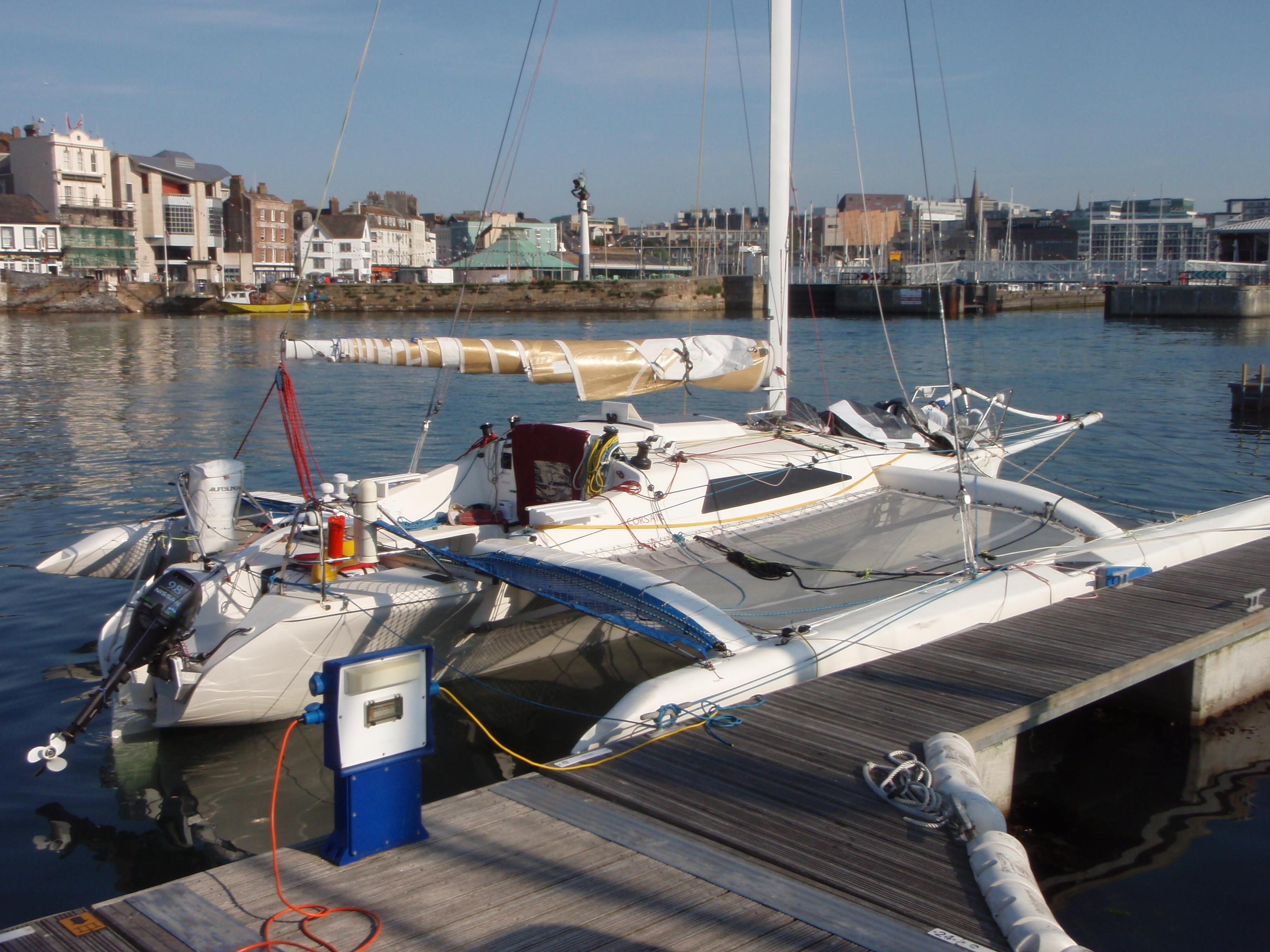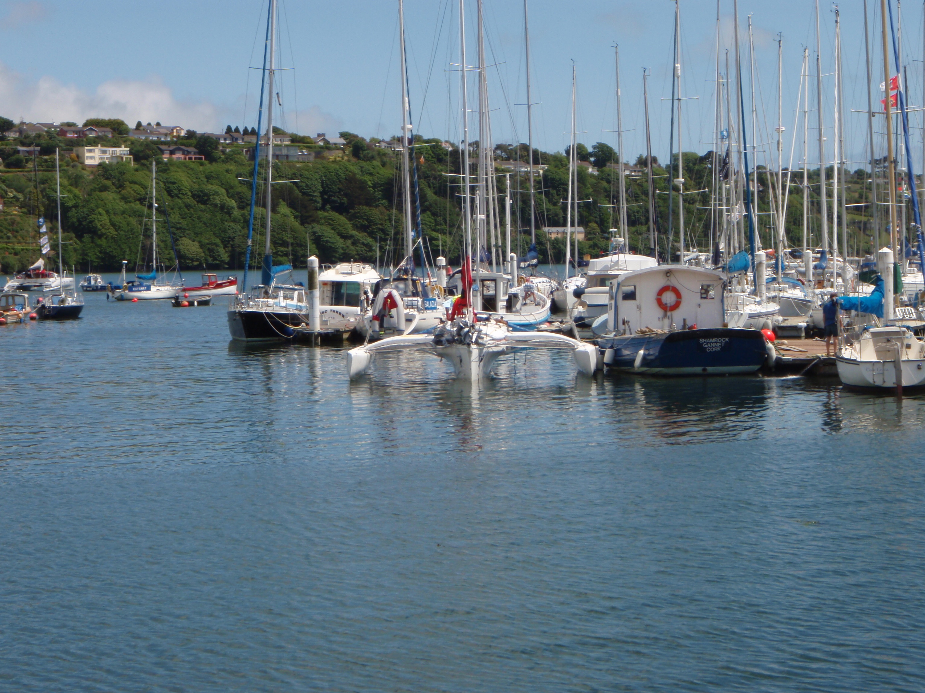 Into the Marina where Paul the Manager had found us a great spot (not easy with a Trimaran) and off into the fleshpots of the Gourmet Capital of West Cork having delivered a surprise declaration of being the first multihull.