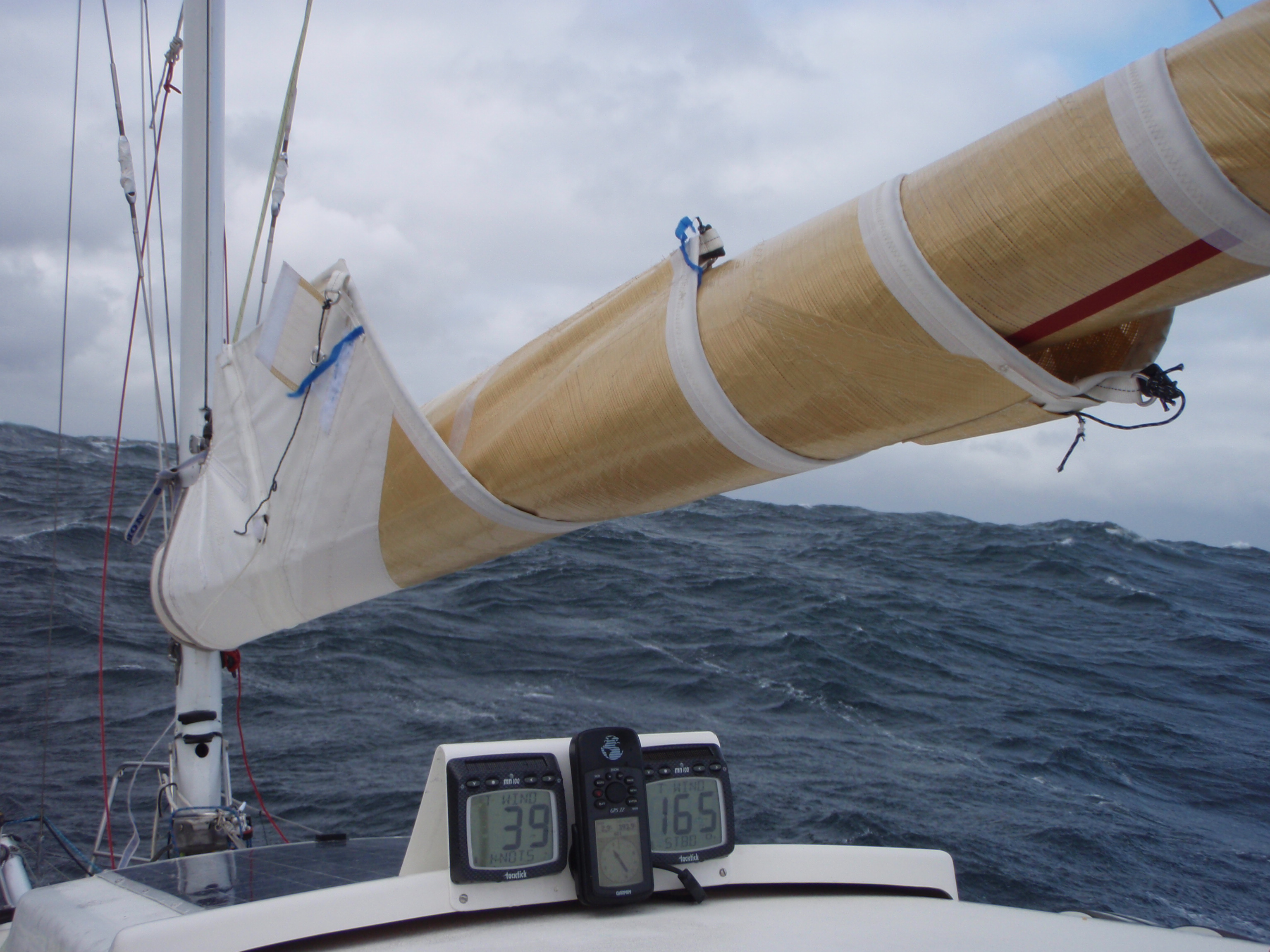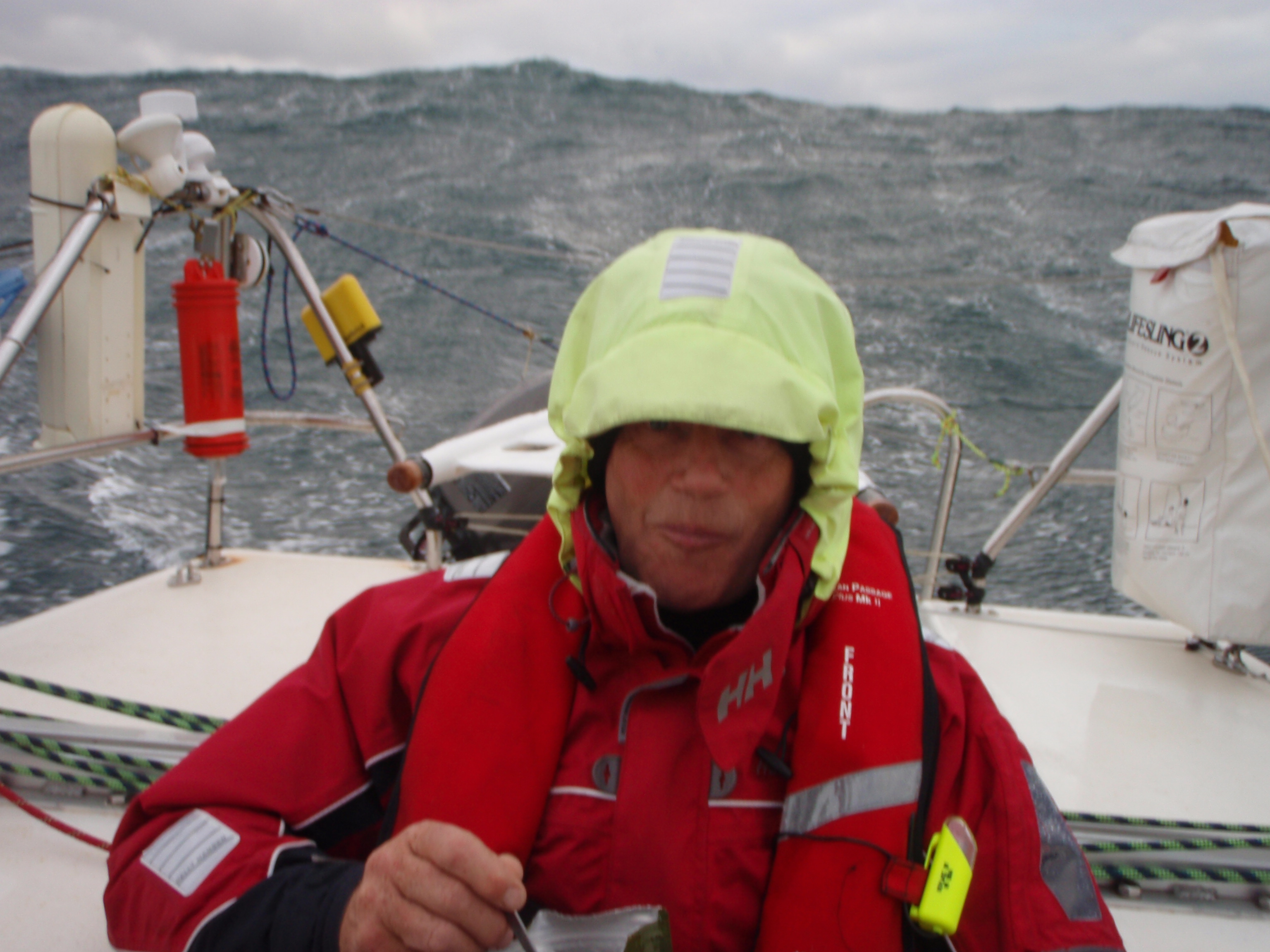 At no time did we race without being clipped on to jackstays or U-bolts and life-jackets on at all times. We were washed around the cockpit from time to time and the sheer weight of a wave descending from behind on top of you is impressive.
